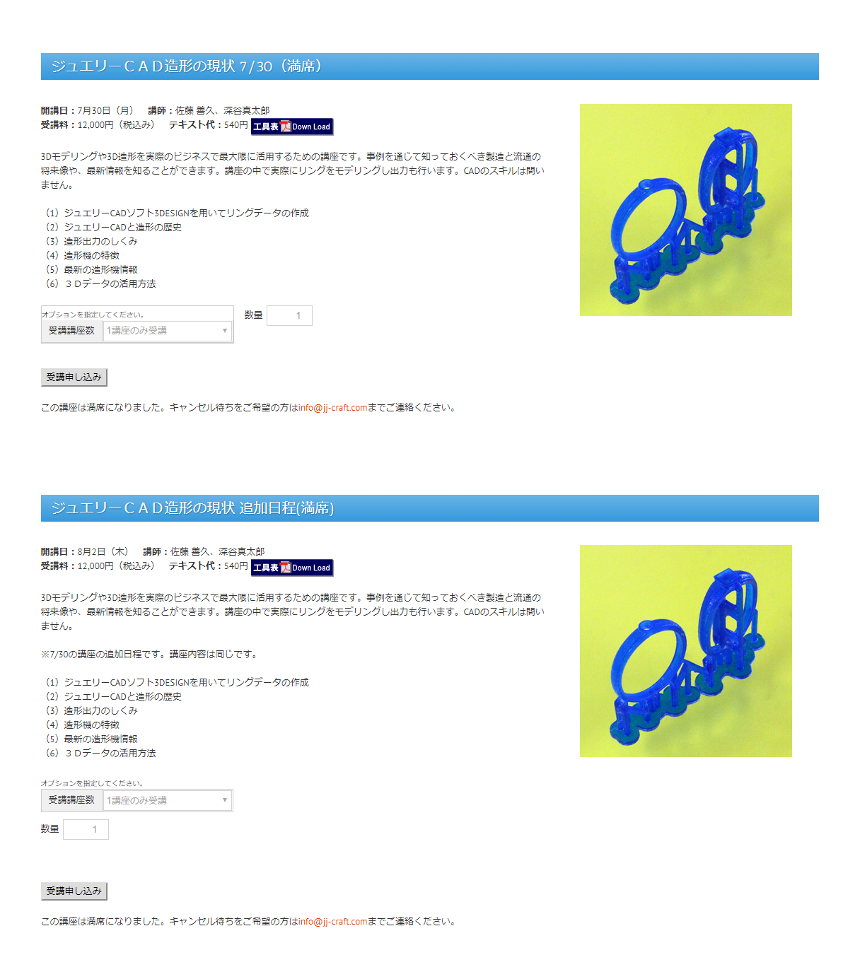 <<ジュエリーCAD造形の現状 >>満員になりました。